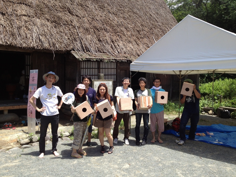 参加者も濃いーし、参加スタッフも濃かった岡本ハッピーバトンでのカホンづくり。ジャンベのカッキーや三線の加納兄弟トミーも参加してくれました。西條せんせーも!