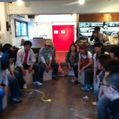 ペア、グループ、親子連れで力を合わせて1つカホンを作る事もできます。