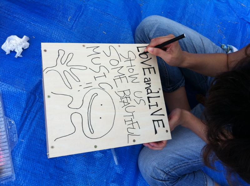 ゼロダテのアーティストに書いてもらったコラボデザインのカホンはみんなに大人気。