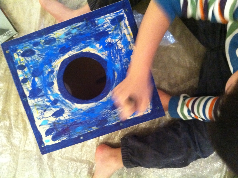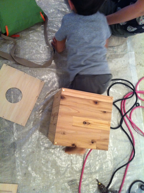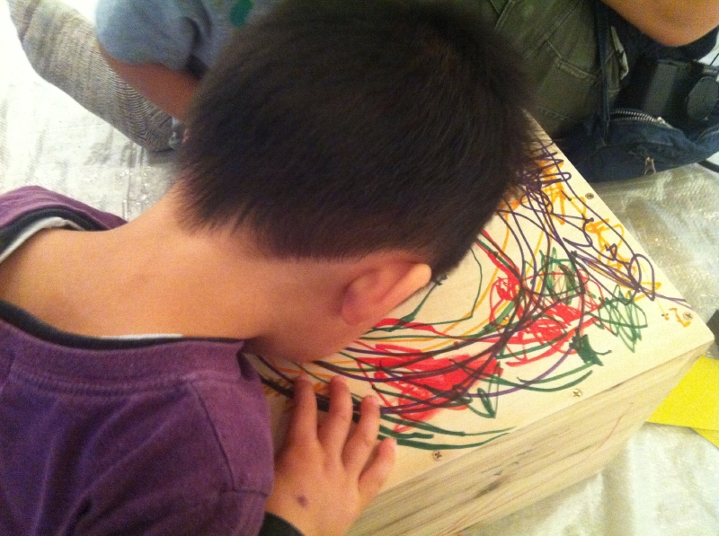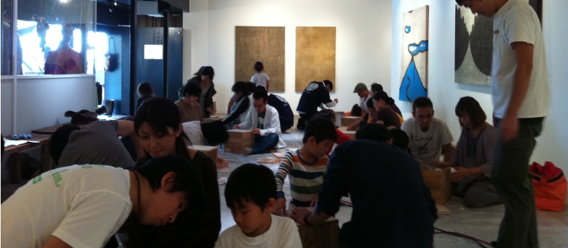 本番はまたこれ最高なワークショップでした。能代の材でカホンつくって絵を描いて、みんなで演奏。