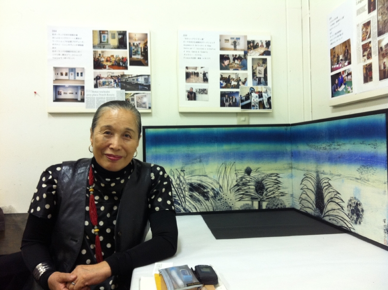jikestudioという会場にまず向かうと、柿の木がお出迎え。農家のおじさんに声をかけながら歩いていくと気軽に声をかけてくれるおば様が。「あー、あなたね。カホンの」と、jikestudioまでの道をご親切に教えてくれました。あとで工房にお礼のご挨拶にいったのですがこの方、木のリトグラフの世界で超有名人らしく実際の版画をみせていただきましたが素敵でした。「木」繋がりでなんか面白いことしたいなー、と思わせる素敵な澤岡泰子さん。