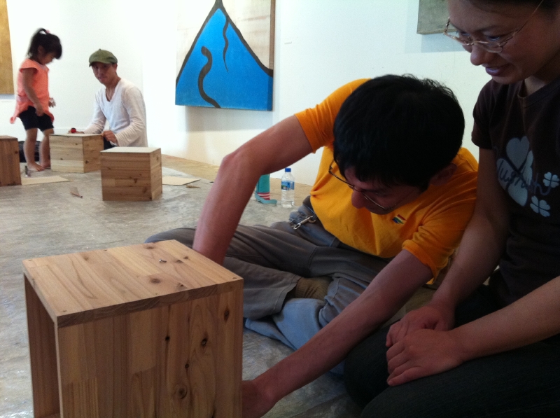 今回のワークショップも本当に感動的なご縁での開催となりました。お盆期間中の東北ツアーをオアゾ松田さんやミナトファニチャー湊さんと企画した延長戦でgood design expo'11(またレポートします)があり能代の間伐材を使ってワークショップを開催しました。