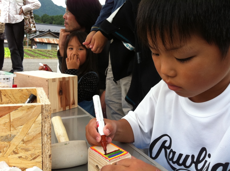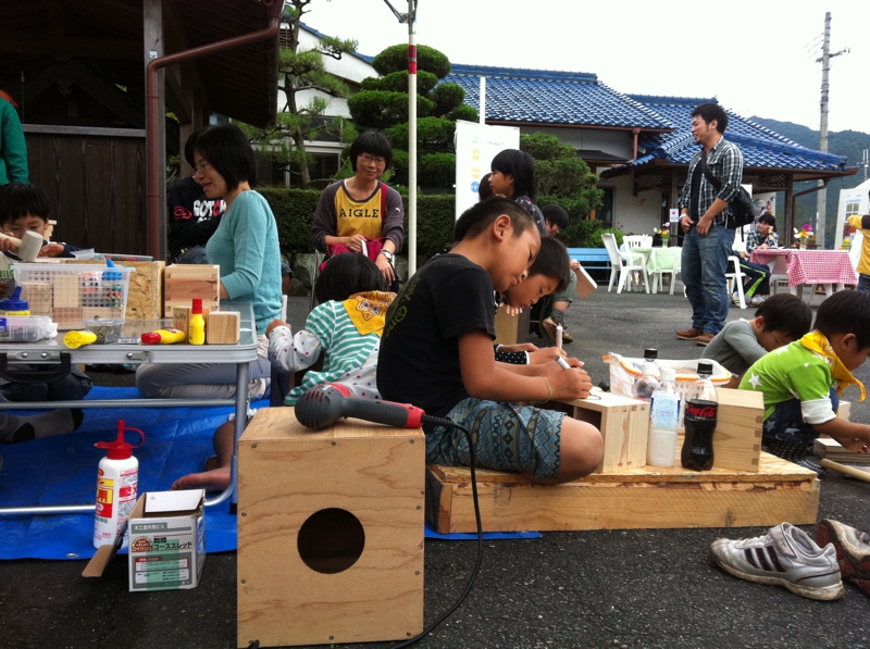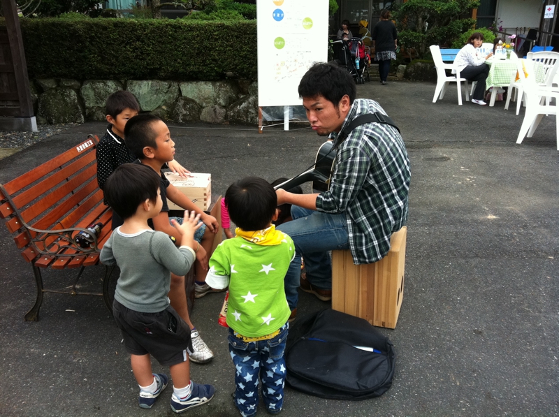 中野集落では、その有志たちが暖かいプロジェクトを立ち上げて、世に発信しようとしている。僕らは、そのプロジェクトのお手伝いができるようなきがしている。子ども達が、ボンゴカホンやシェーカーをつくり、みんなでセッションして、大人も子どもも輪になって音楽にふれあい、オソトでおいしい地元の食材をたしなむ。なんという素晴らしい手作りイベントだろうか。