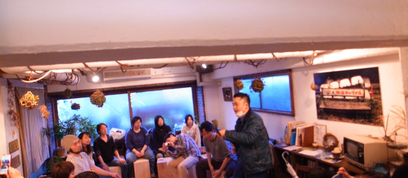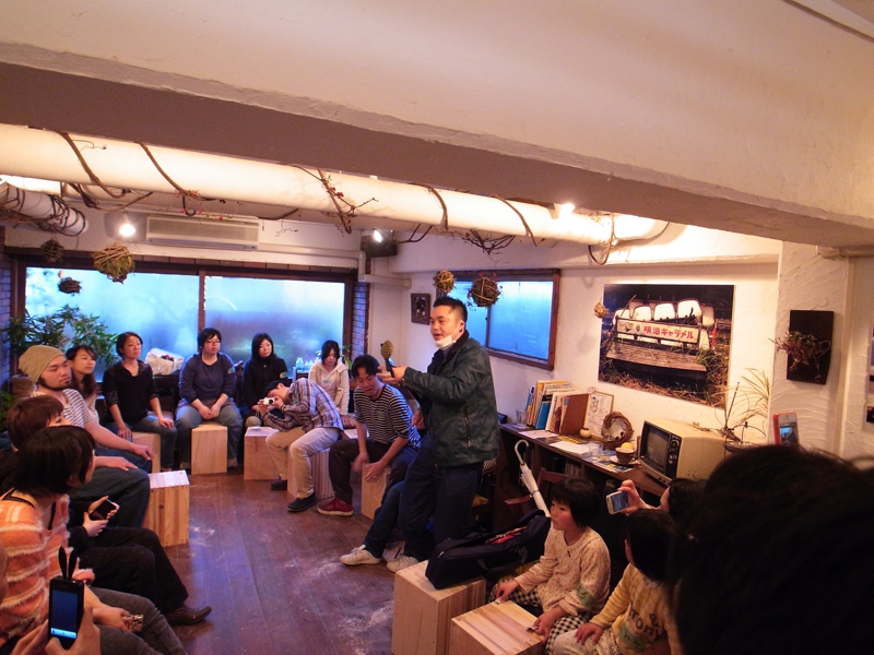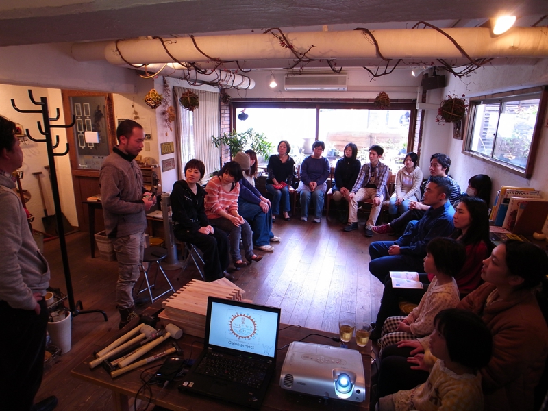 2012/3/31。僕たちは、ここに帰ってきたような気持ちでいた。カホンプロジェクトの活動も3年を迎え、カホンをつくるという単純な「センス」と「行動」は仲間が仲間を呼び、環境教育であったり地域デザインであったりジャンルを超えたプロジェクトへと展開しつつあるおかげで、西へ東へとても忙しい日々を過ごしていた。そのなかでの神戸ミドリカフェ。