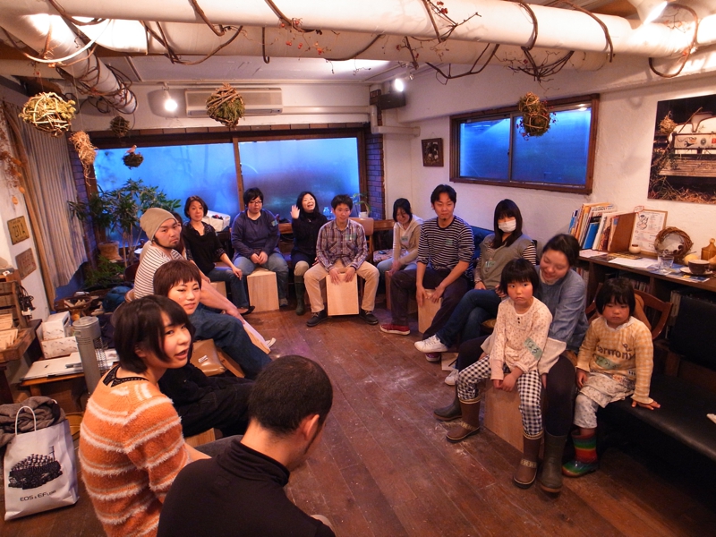 岡本ハッピーバトン@ミドリカフェでカホンづくり 2012.3.31