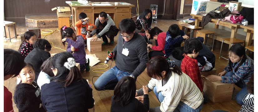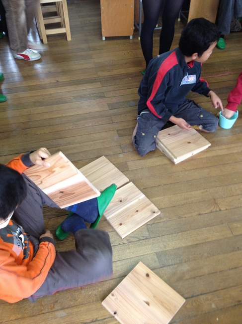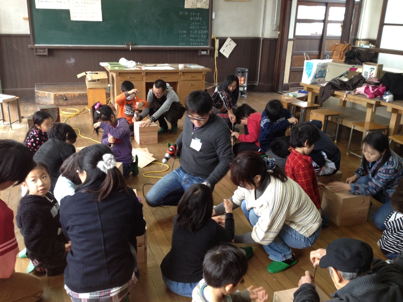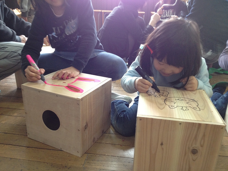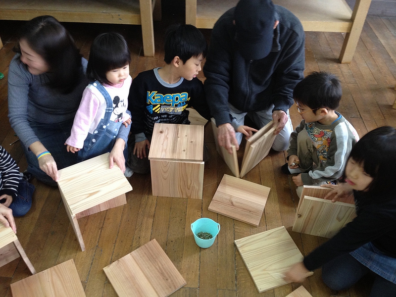 京都で活動しているひのでやエコライフ研究所さんとの共同で京都市のエコ学区でのワークショップでしたが、初の京都ということで京都産の間伐材の手配が相当苦労しました。