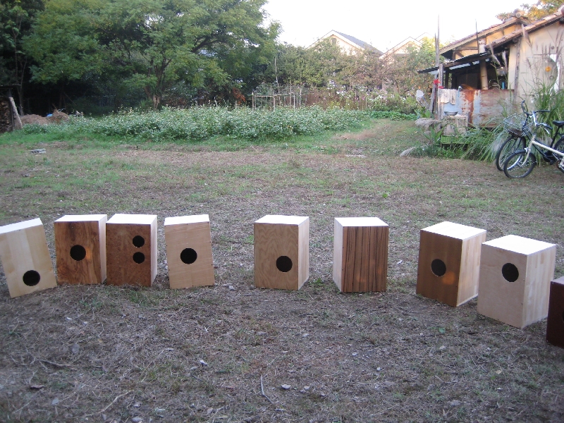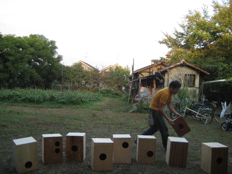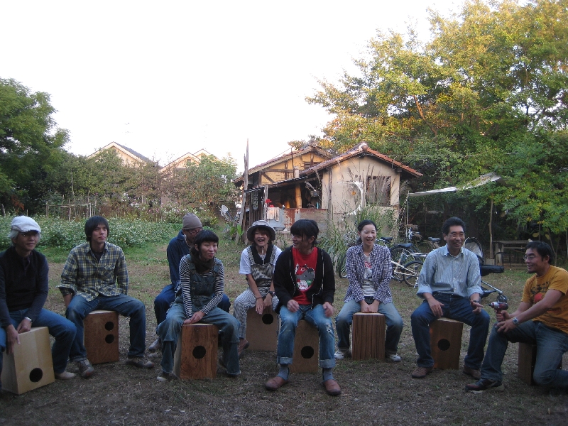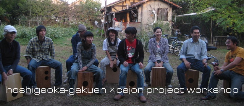 秋晴れの日曜日。場所は、枚方市にある星が丘学園洋裁学校。「急なんやけど、カホンづくりワークショップ手伝いにきて」との荒西さんからの電話。急遽、部品を用意して出向いた先は、街中の小高い丘?にある学校?農家?